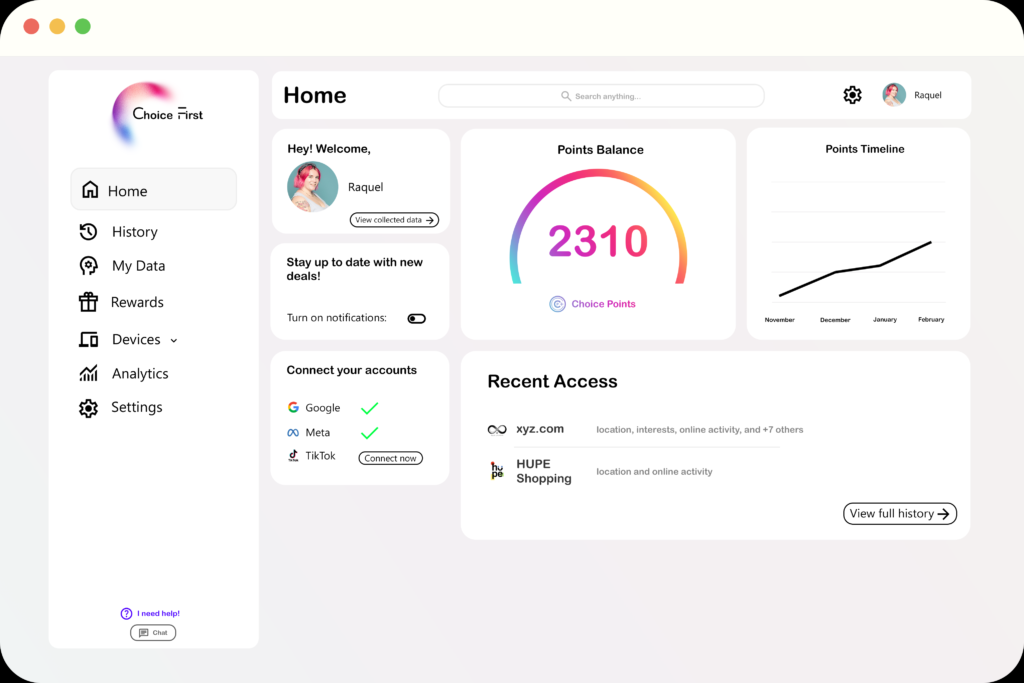 At Choice First, we believe data should work for you, not the other way around. We’re here to arm you with exhaustive data-awareness and unprecedented control over your personal data.